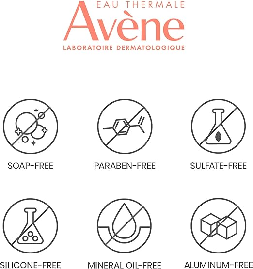 Avene thermal spring water (Avene Aqua). Water (aqua). Sodium lauroyl methyl isethionate. Zinc coceth sulfate. Polysorbate 20. Sodium cocoamphoacetate. Ceteareth-60 myristyl glycol. Peg-40 hydrogenated castor oil. Citric acid. Disodium edta. Fragrance (parfum). Glyceryl laurate. Green 5 (ci 61570). Sodium benzoate. Sodium hydroxide. Yellow 5 (ci 19140). Zinc gluconate.Directions