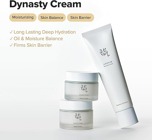 - Deep Hydration : Dynasty Cream delivers intense hydration and glow for dry, dull, or uneven skin. A Korean moisturizer enriched with ginseng root water, squalane, and niacinamide to balance oil and moisture levels.