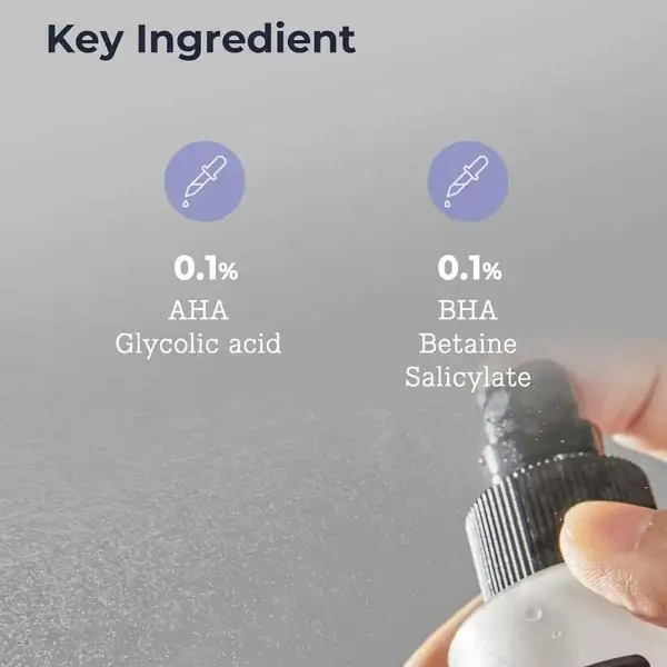 Mineral Water, Salix Alba (Willow) Bark Water, Pyrus Malus (Apple) Fruit Water, Butylene Glycol, 1,2-Hexanediol, Sodium Lactate, Glycolic Acid, Water, Betaine Salicylate, Allantoin, Panthenol, Ethyl Hexanediol.